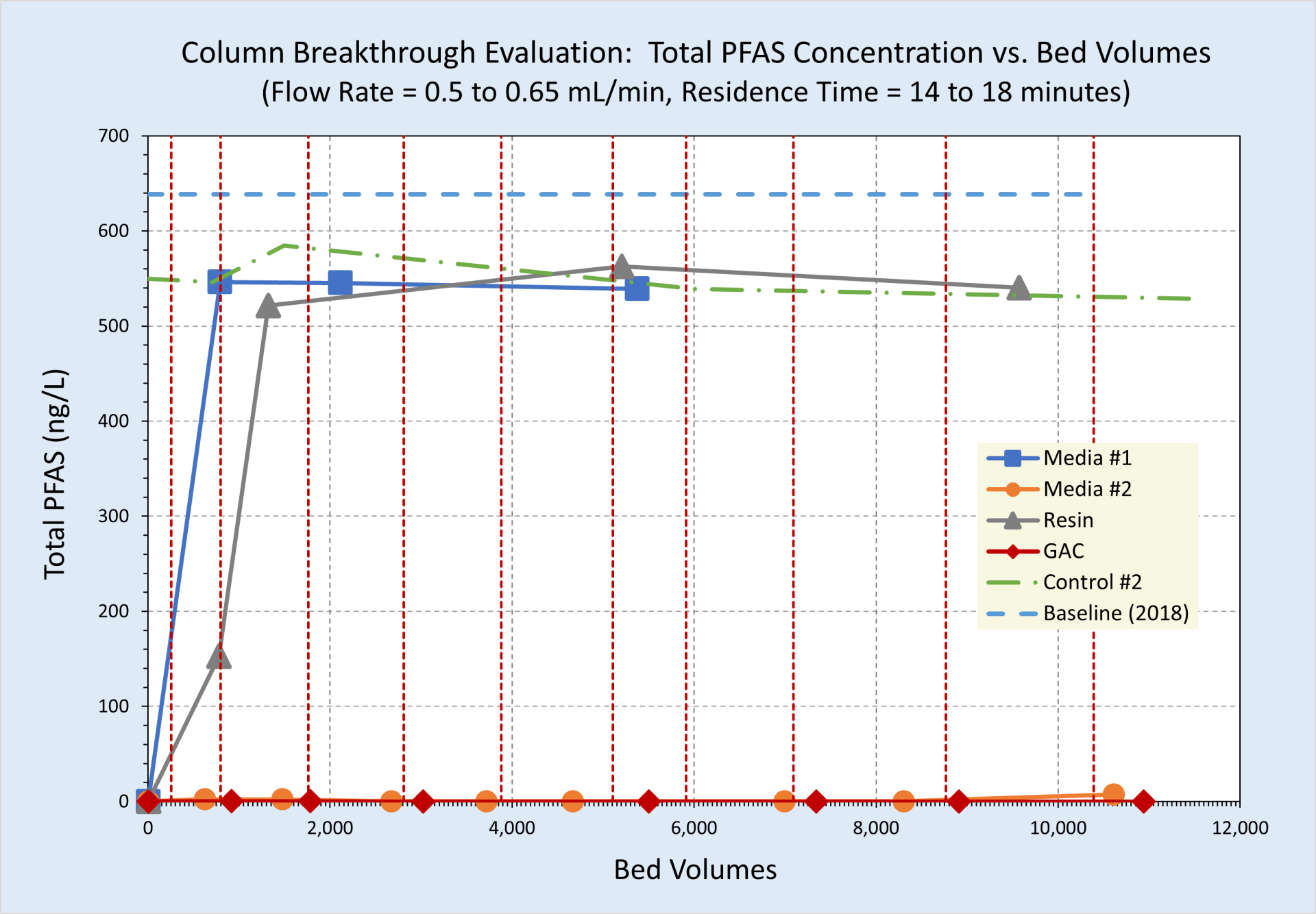 - Interpretation of results to evaluate actual annual costs of media utilization when accounting for short-chain PFAS breakthrough, residence time, and other non-target constituent impacts