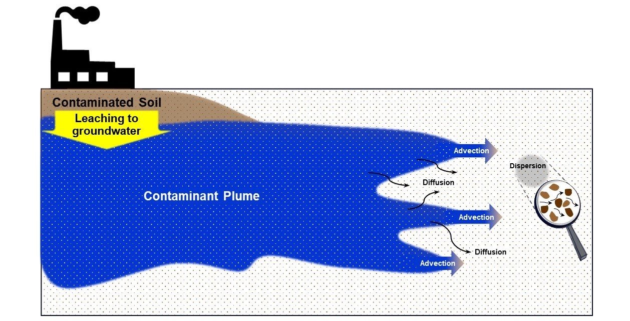 - Dilution decreases the concentrations of contaminants as they move through and mix with clean groundwater.